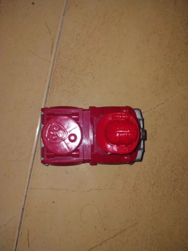 Camión de bomberos de juguete de color rojo. - Diseño con detalles. - Insignia de huella de pata en la parte superior.
