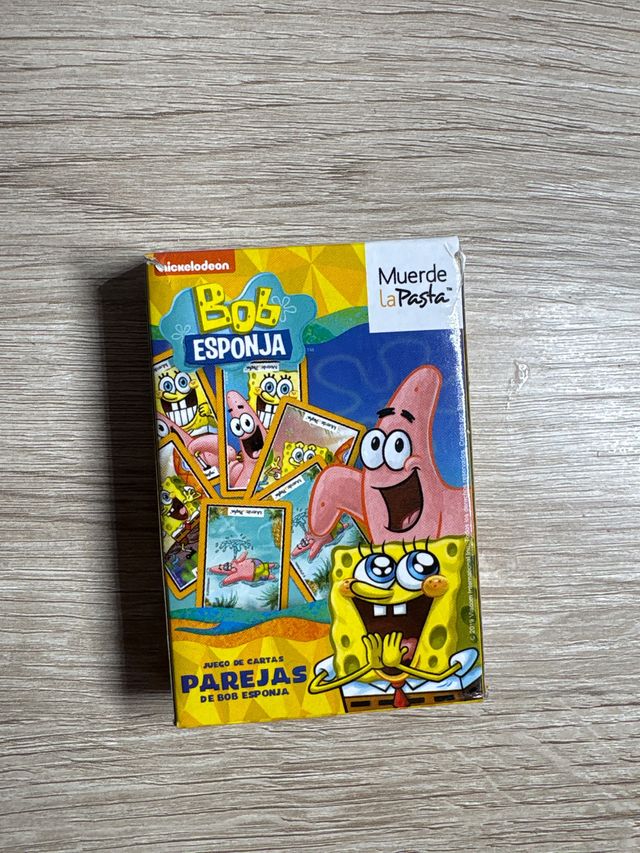 Juego de cartas de parejas de Bob Esponja. - Incluye personajes de la serie. - Diseño colorido y divertido.