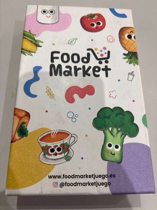 Juego de cartas Food Market con divertidos personajes de frutas y verduras. - Ilustraciones coloridas y originales. - Ideal para partidas familiares. - A partir de 6 años