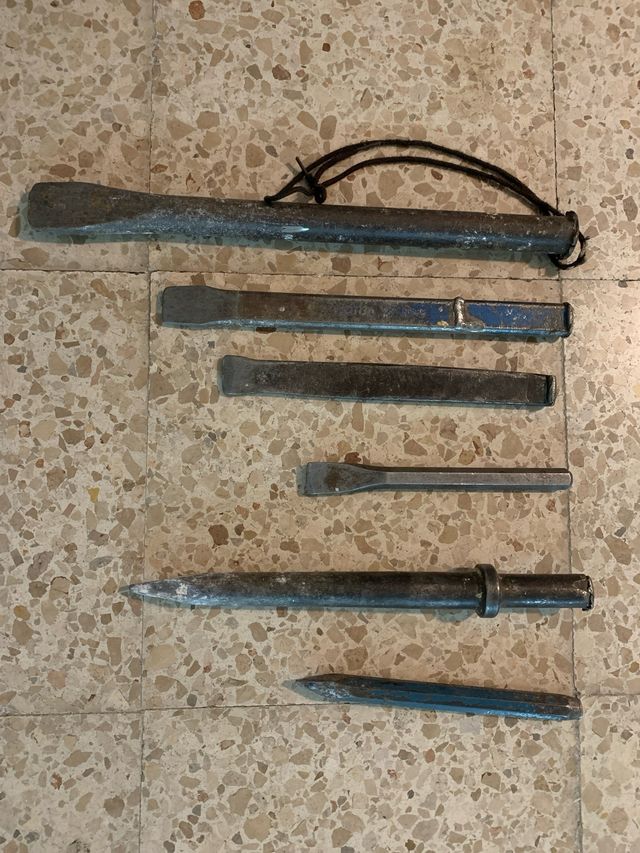 Juego de cinceles planos y de pico las medidas de izda a drcha son: 39, 29, 24 ,19 31, 20