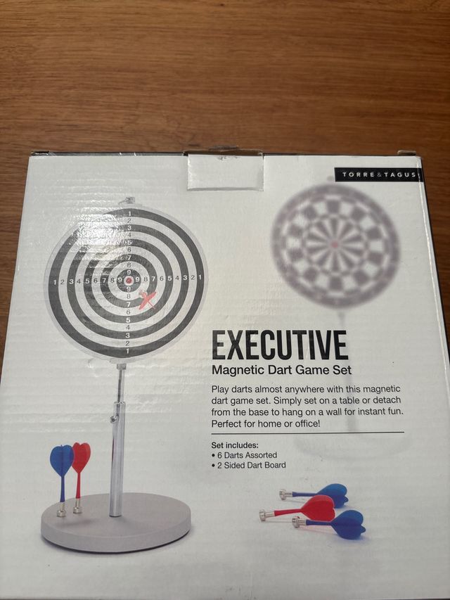 Detalles del productoJuego de dardos magnético de la marca Torre & Tagus, ideal para casa u oficina. Se puede colocar sobre una mesa o colgar en la pared.