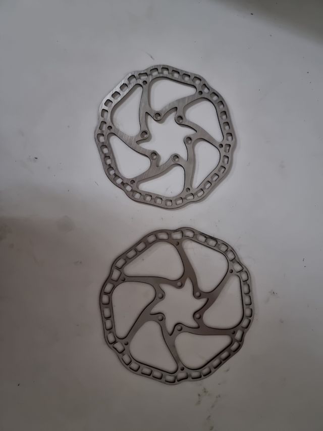 JUEGO DE DISCOS DE FRENO PARA BICICLETA DE 140 TRASERO Y 160 DELANTERO , NUEVOS . MUY LIGEROS