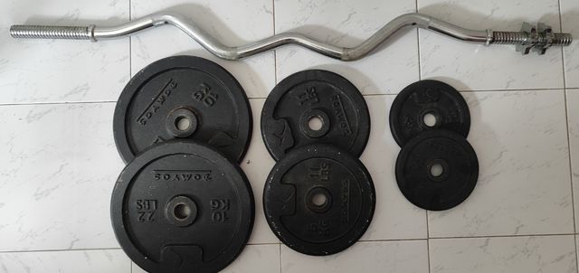 Juego de discos de pesas y barra dominadas