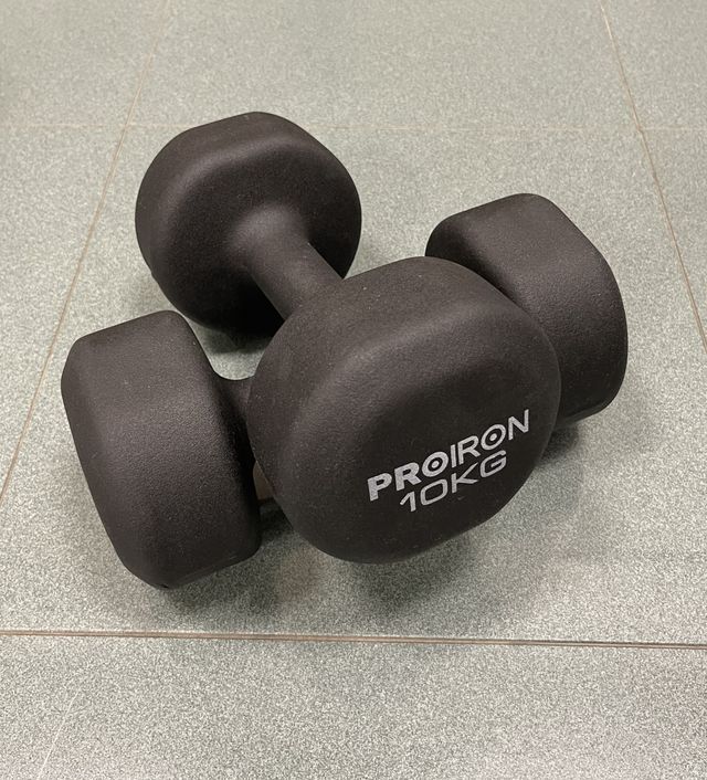 Detalles del productoJuego de dos mancuernas de 10kg con revestimiento de neopreno - PROIRON Medidas del producto