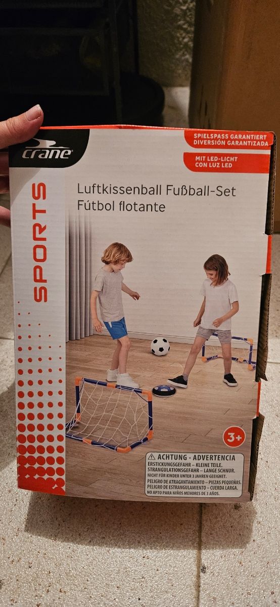 Detalles del productoSet de fútbol flotante para niños a partir de 3 años. Incluye porterías y un balón que se desliza sobre un cojín de aire.