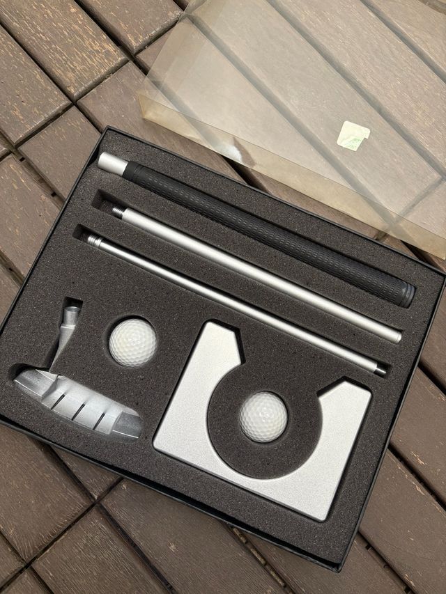 Detalles del productoJuego de golf miniatura en perfecto estado. Incluye dos palos, dos pelotas y un putting green. El juego está en su caja original. - Ideal para regalo o para practicar en casa. - Diseño elegante y compacto. - Perfecto estado de conservación.