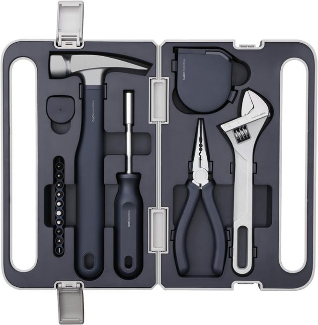 Detalles del productoHOTO Juego de Herramientas de Mano, Compone de martillo de uñas y martillo de goma, juego de 10 taladros, atornillador multiuso, cinta medidora autobloqueante, llave ajustable, y alicates de aguja. NO ES NEGOCIABLE