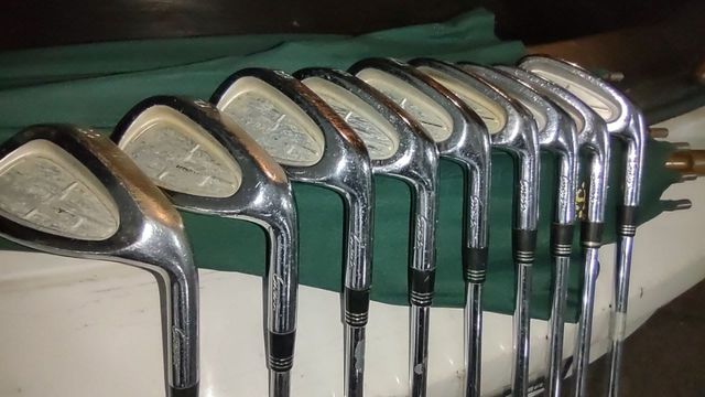 Detalles del productoGolf 9 palos (3 a SW), regular, varilla acero True Temper, Dynamic Gold, muy precisos, a jugar..grip Lamping, ideal pitch&put, y golf. Regalo DVDs de Golf. Pitch& putt, y con un hibrido Nike...todo 123€, Juego completo.
