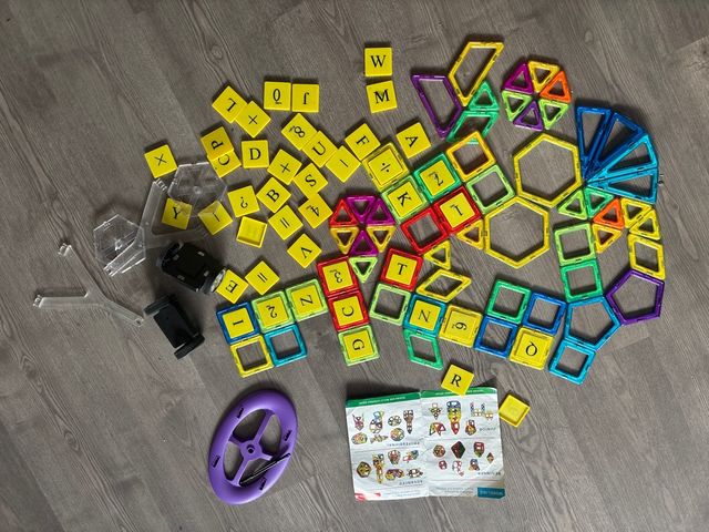 Detalles del productoSet de piezas magnéticas con letras, números y formas geométricas.