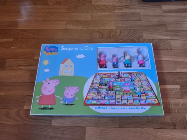 Juego de mesa Juego de la Oca de Peppa Pig. Incluye figuras, dado y tablero. - Contenido: 4 figuras, 1 dado, 1 tablero. - Tamaño del tablero: 40 x 40cm.