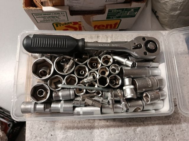 Detalles del productoJuego de llaves de vaso y carraca en buen estado. Incluye una gran variedad de vasos y una carraca. Ideales para mecánica, precio final, no se rebaja.