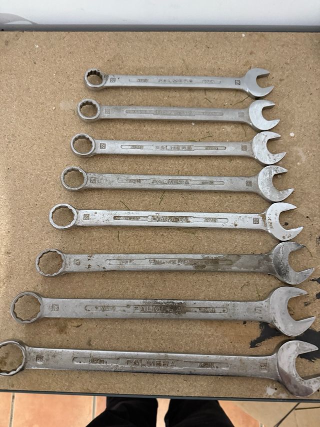 Conjunto de llaves fijas combinadas de la marca PALMERA. 2 - Fabricadas en España. - Diseño de doble boca. - Variedad de tamaños.28,27,25,24,23,22,21,20