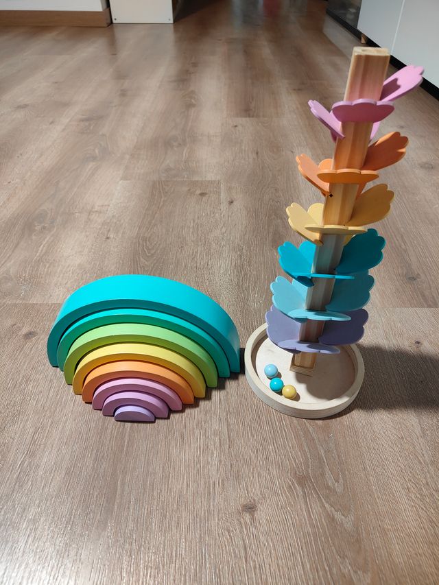 Detalles del productoSet de juegos de madera para niños, ideal para estimular la creatividad y la motricidad.