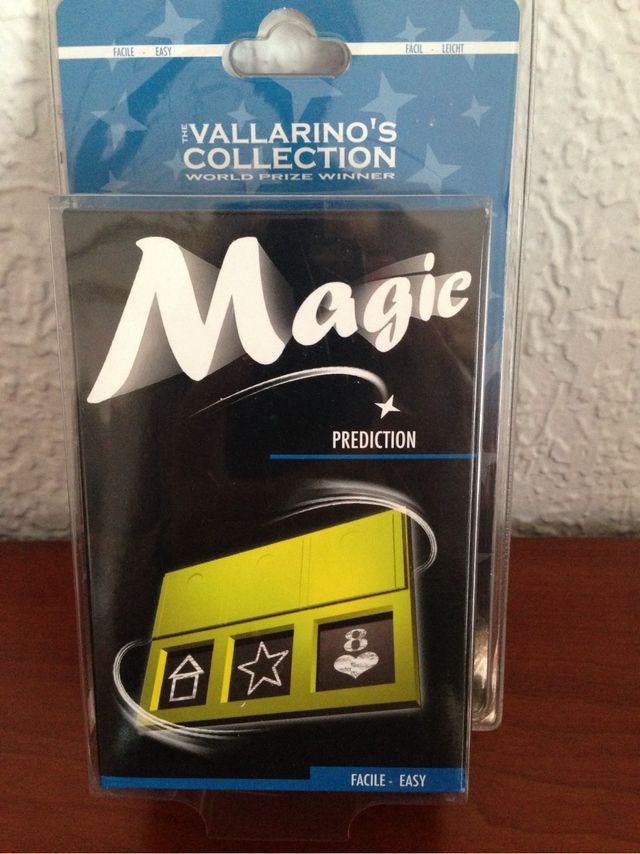 Detalles del productoJuego de manos de la marca OID Magic, de muy buena calidad. El mago podrá realizar una serie de predicciones. Instrucciones en español. A partir de 7 años. Nuevo a estrenar y precintado. Medidas de la caja (sin el blister) 15 x 10 cm.