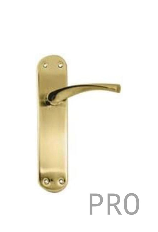 MICEL - 07078 - Juego de manilla para puerta con placa de acero ancha y maneta de aluminio, Acabado en latón satinado, Color dorado, 280 x 145 x 70 mm