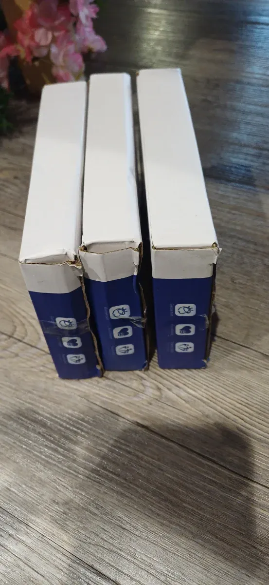 Tres cajas de juego de mesa. - Cajas de cartón blanco y azul. - Ilustraciones en la parte inferior de las cajas.