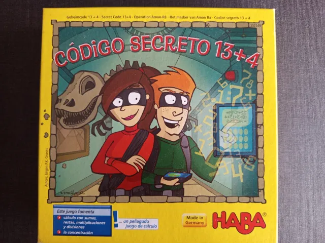 Detalles del productoJuego de mesa educativo Código Secreto 13+4 de HABA. Fomenta el cálculo con sumas, restas, multiplicaciones y divisiones, además de la concentración.
