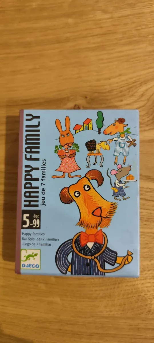 Detalles del productoJuego de cartas Happy Family de Djeco, ideal para jugar en familia. Recomendado para edades de 5 a 99 años.