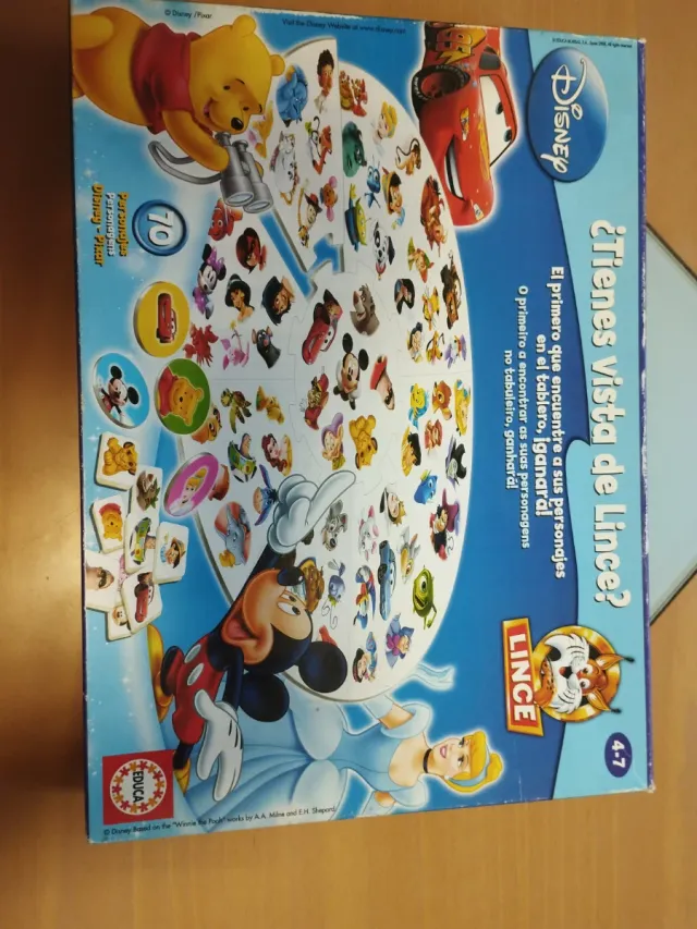 Detalles del productoJuego de mesa ¿Tienes vista de Lince? de Educa, con personajes de Disney y Pixar. Ideal para niños de 4 a 7 años.