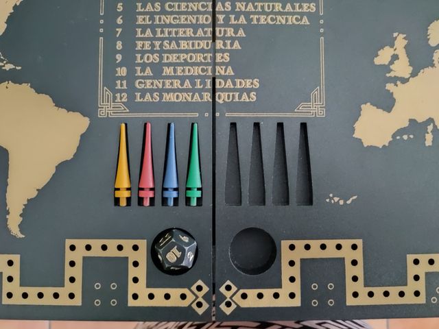 Detalles del productoExclusivo Juego de mesa presentado en un estuche en forma de libro, consta de un tablero de madera, folleto con la instrucciones y dos libros con preguntas sobre distintas temáticas relacionadas con los cinco siglos desde el descubrimiento de América con 4 niveles de dificultad. El estuche mide 34 x 24 x 9 cm. Totalmente nuevo Medidas del producto