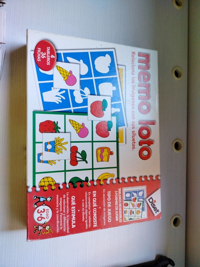 Detalles del productoJuego de mesa educativo Memo Loto de Diset. Ideal para desarrollar la memoria y la coordinación.