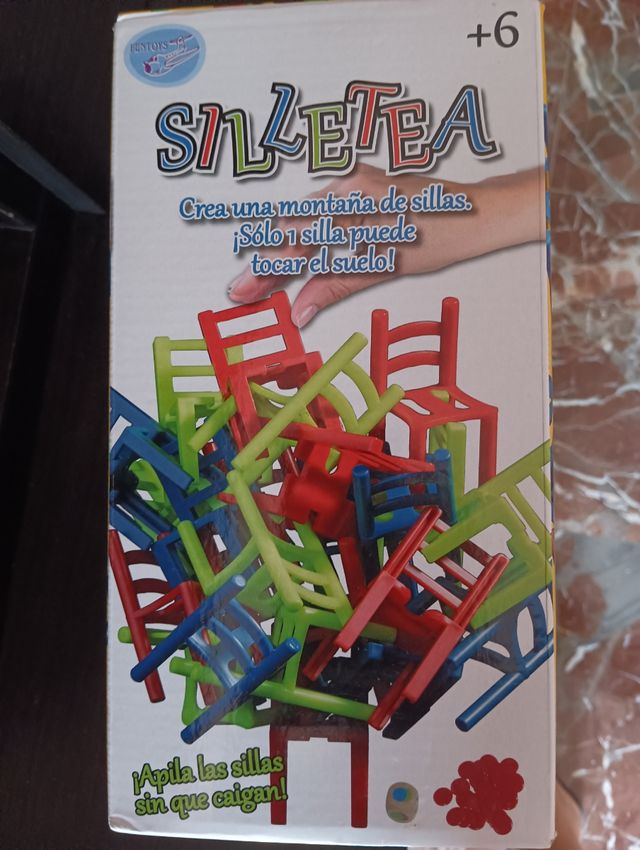 Detalles del productoJuego de mesa SILLETEA para mayores de 6 años. Crea una montaña de sillas donde solo una puede tocar el suelo.