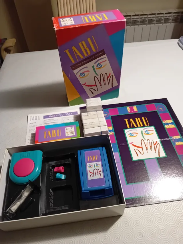 Juego de mesa Tabú, ideal para partidas divertidas. - Incluye tablero. - Contiene cartas. - Incluye temporizador y reloj de arena - Completo