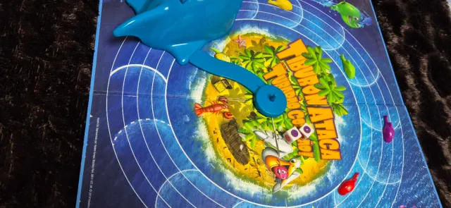 Divertido juego de mesa Tiburón Ataque. - Incluye piezas de colores. - Tablero temático de isla. - Mecanismo de tiburón giratorio.
