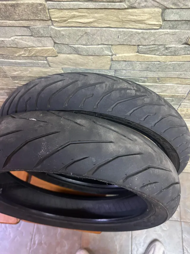 Detalles del productoPrácticamente nuevos incluso con los pelitos, montados en una Kawasaki ninja 250r. Buenos neumáticos para rutas secas como para circular en mojado. 110/70/17(DOT-4222)-130/70/17(DOT-3022)