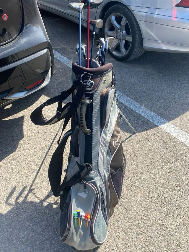 juego de palos de golf, completo con Driver, pat y maderas de campo.
