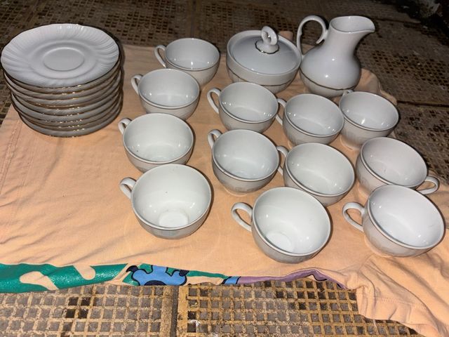 Detalles del productoElegante juego de porcelana fina de la marca Irabia, con delicados detalles en oro fino.
