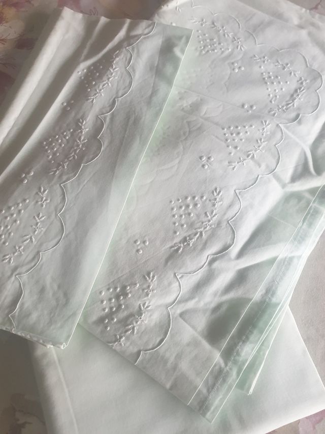 Juego de sabanas bordado antiguo. Para cama de matrimonio, tiene sabana de abajo.