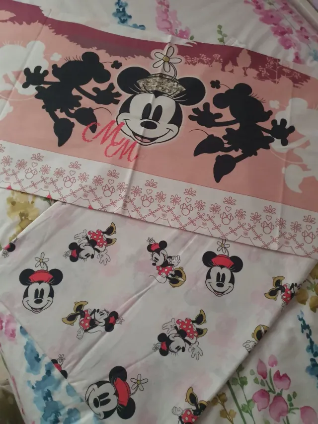Detalles del productoConjunto de ropa de cama con estampado de Minnie Mouse. Sabana encimera y funda de almohada.