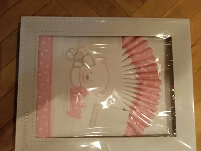 Conjunto de sábanas para cuna con un tierno diseño. - Sábana bajera. - Sábana encimera. - Funda de almohada. - Estampado de patitas y osito.