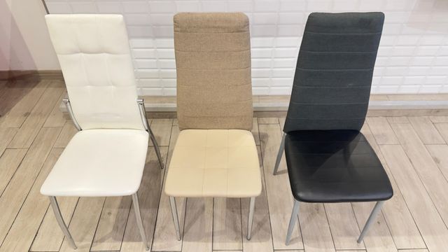 Detalles del productoConjunto de sillas de tres colores, de diseño moderno, ideales para hostelería o comedor.