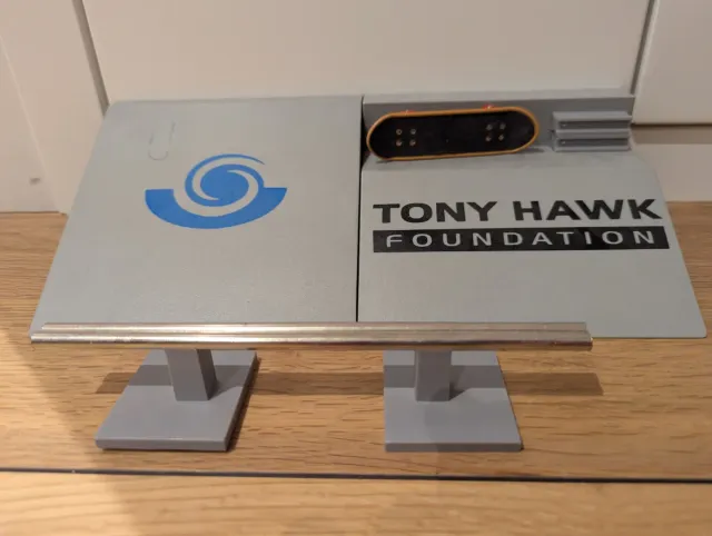 Detalles del productoSet de juego de skate de la Tony Hawk Foundation. Incluye una rampa y una barra.