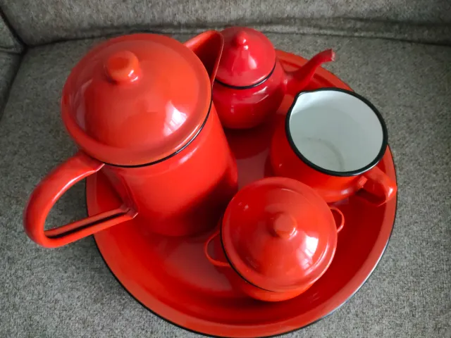 Juego de té esmaltado rojo