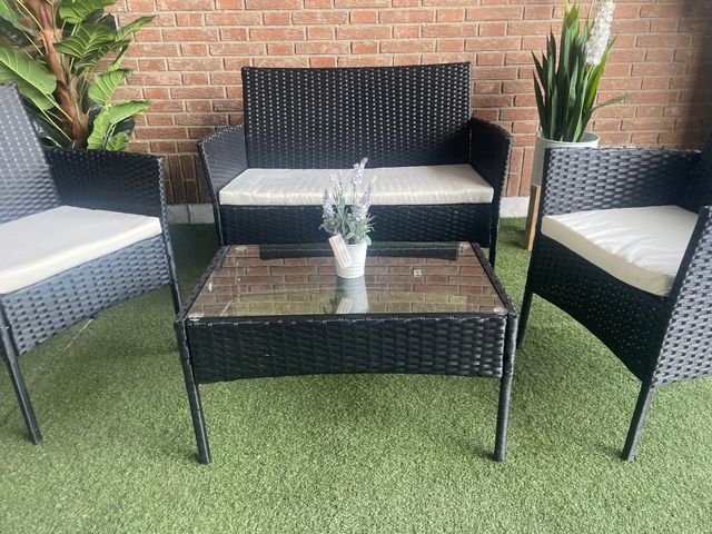 Detalles del productoConjunto de terraza de ratán sintético, nuevo de fabrica.