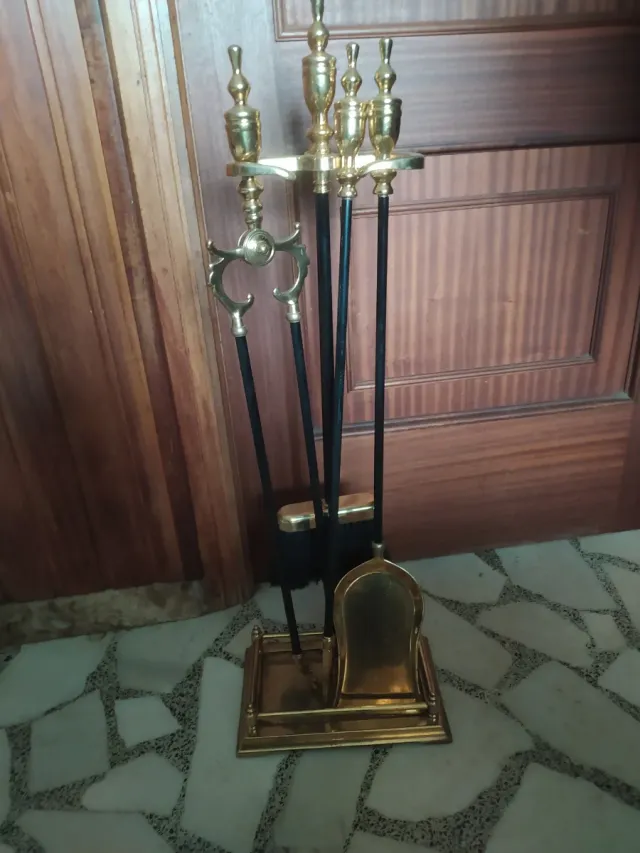 Elegante juego de útiles para chimenea con acabados de lujo.