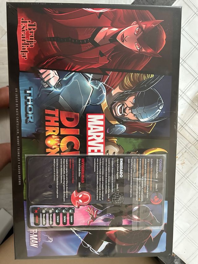 Juego de mesa Dice Throne Marvel con las correcciones enviadas por la editorial, versión en castellano de Delírium. El juego está todavía precintado sin usar como vino.