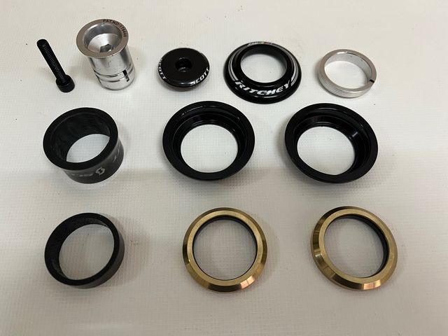Detalles del producto- Componentes de dirección 1-1/8 Ritchey WCS con rodamientos superior e inferior.