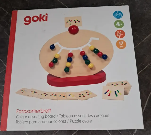 Detalles del productoJuego de mesa de madera de la marca Goki, modelo Farbsortierbrett o Colour assorting board.