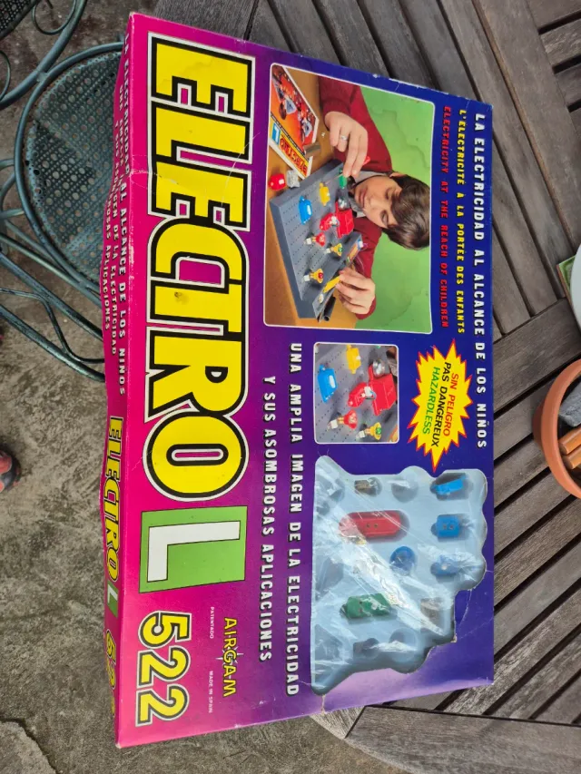 Detalles del productoJuego educativo Electro L 522 de Airgam, años 80. Diseñado para que los niños aprendan sobre electricidad de forma segura.
