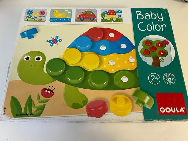 Juego encajar bolas madera GOULA. Ideal para motricidad fina. Edad recomendada 2 años