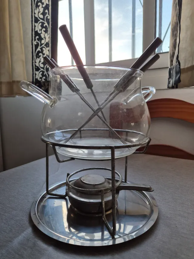 Juego Fondue Cristal 6 Pinchos y Quemador