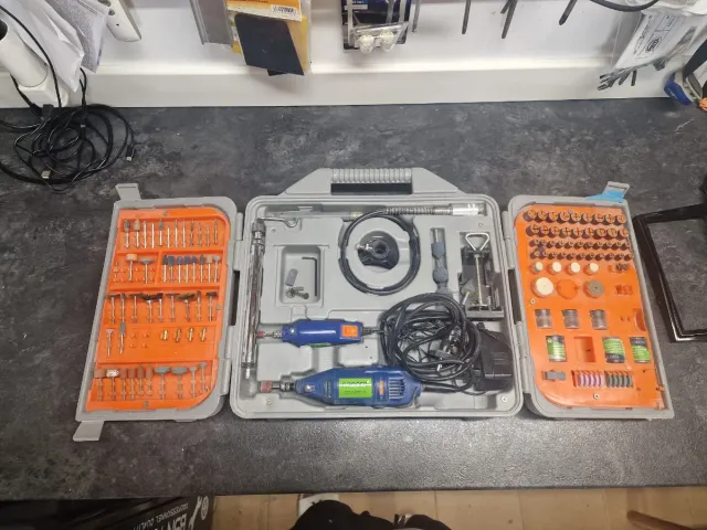 Detalles del productoSet de herramientas tipo Dremel de la marca Canora, ideal para trabajos de precisión y manualidades.