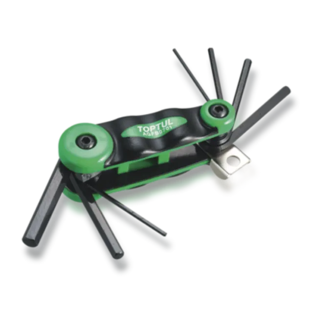 Juego de llaves Allen tipo navaja de la marca Toptul. - Color negro. - Diseño compacto y plegable.