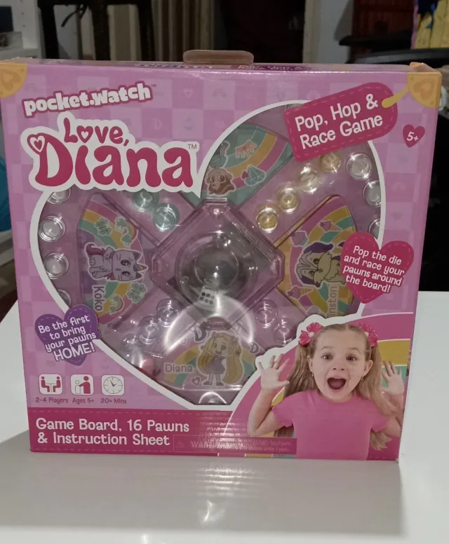 Detalles del productoJuego de mesa Love Diana, Pop, Hop & Race Game. Incluye tablero, 16 peones e instrucciones.