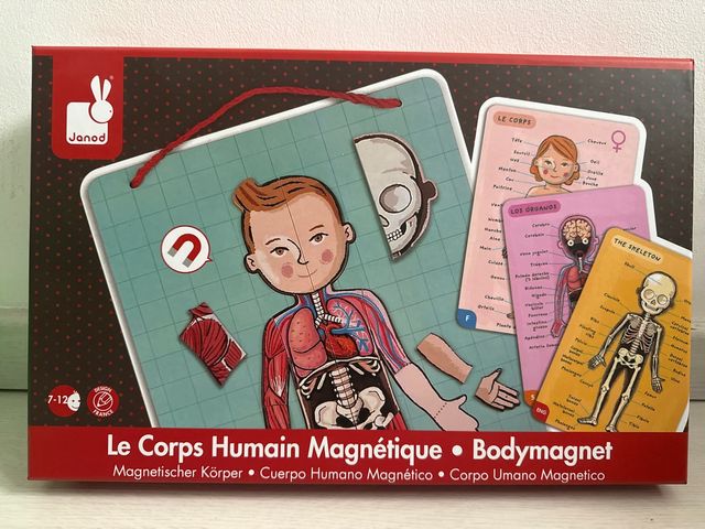 Detalles del productoDivertido juego magnético para aprender sobre el cuerpo humano. Incluye piezas magnéticas y tarjetas informativas.