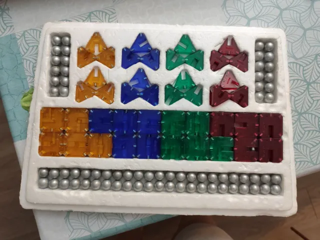 Detalles del productoSet de construcción magnética con piezas de colores.